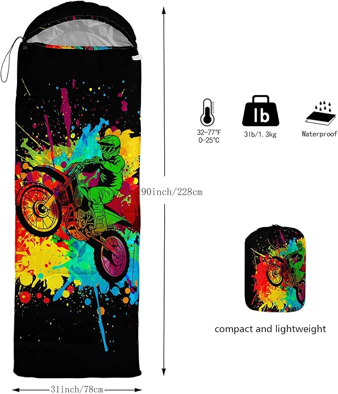 • 【Great For 3 Seasons】Axolotl sleeping bags can be used in 3 seasons with a design temperature of 32℉- 77℉(0℃-25℃). Recommended limit temperature: 41℉-77℉.Keep you warm and safe even in cool weather temperatures. waterproof sleeping bags keep you warm in wet conditions and prevent you from getting damp.