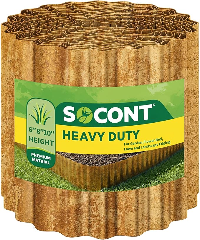 Corrugated Metal Garden Edging, 6"×40Ft Durable Landscape Border for Garden, Lawn, Flower Beds and Paver Edging (Rusty)