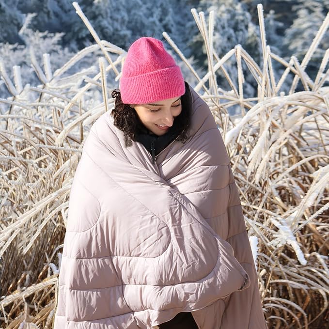 zzlamb Camping Blanket, Outdoor Lightweight Travel Blanket Puffy Portable Down Alternative, Windproof Warm Cloak with Snaps, Cozy Quilt Backpacking Picnic RV Plane Car Hammock Beach Climbing
