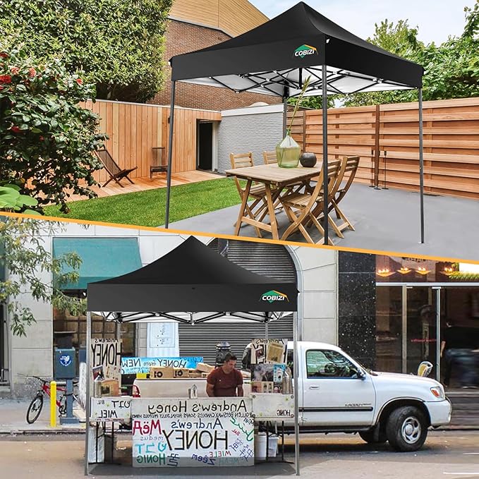 COBIZI 6.6x6.6 Pop Up Canopy Without Sidewall,Heavy Duty Canopy UPF 50+ All Season Wind Waterproof Commercial Outdoor Party Tents for Parties Canopy Gazebo with Storage Bag(6.6 x 6.6 ft Black)