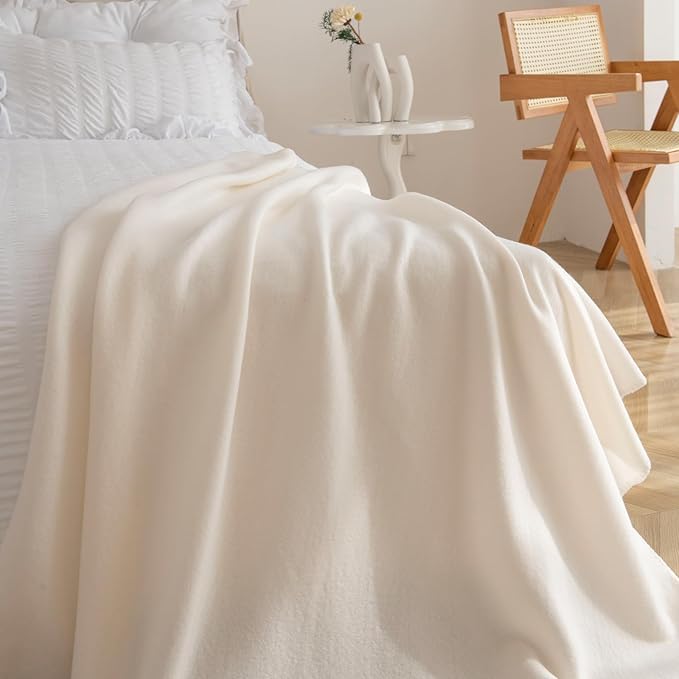 CAI TENG Fleece Throw Blankets Lightweight Warm Soft Cozy Kids Blanket Pet-Friendly Bulk Fleece Blanket Solid for Home, Bed, Sofa, Dorm, Office, Gifts, Outdoor Off-White 6 Pack 50 x 60 inch