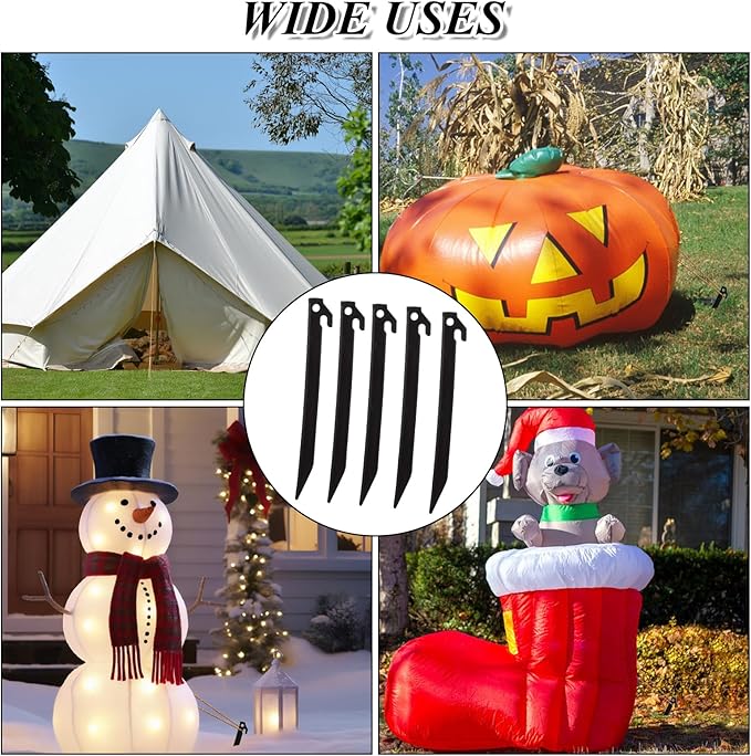 • Easy To Use: The easy-to-use plastic camping stakes require no special skills or tools. Simply angle them into the ground and secure with rope for a quick and stable setup that can be easily repeated for each tent section