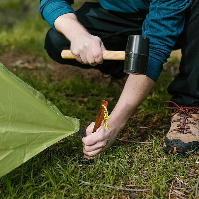 • Firm and stable: These aluminum tent stakes don't rust and the anodized color coating does not flake or scratch off. They can firmly secure tents, hammocks and canopy in various soil conditions and don’t bend even after being hammered with a mallet or rock.