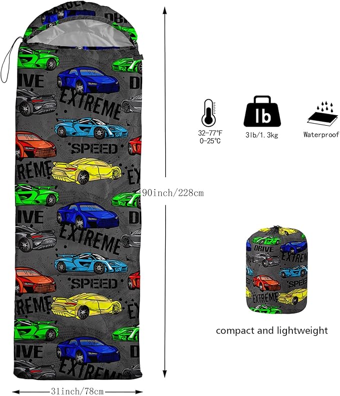 • 【Fits For 3 Seasons】: Size - 31 by 90 inches (W x D). Our Colour Racing sleeping bag can be used in 3 seasons with a design temperature of 32℉-77℉(0℃-25℃). These Sleeping bags also have a weather resistant waterproof design to keep you warm and prevent you from any dampness.