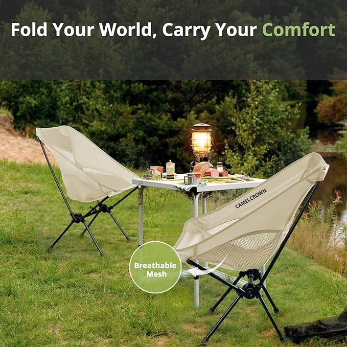 CAMEL CROWN Portable Camping Chair Lightweight Compact Folding Chair Mesh for Outdoor Camp Travel Beach Picnic Festival Hiking Backpacking White