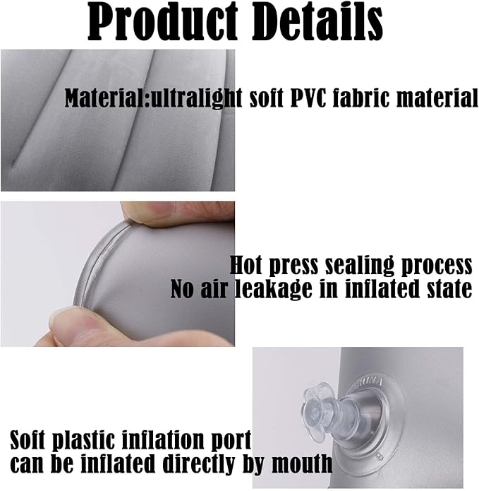 • Material- Our inflatable pillows are made of ultralight soft PVC fabric material(there may be a little smell for new products due to material, better take out for few days).