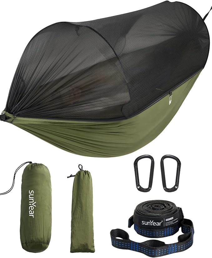 Sunyear Camping Hammock with Net - Double&Single Hammock with House-Like Net- Easy Setup & Pack, Lightweight & Portable, Perfect for Hiking, Backpacking, Outdoor Sleeping