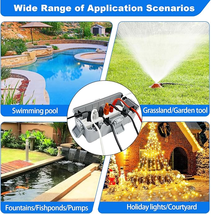 • WIDE APPLICATIONS:Ideal for a variety of outdoor & indoor applications including patio, lawn and garden power tools,holiday lighting, landscape decorations, pool pumps, fountains, fish ponds, patio heaters, hot tub, air conditioners, security cameras and more.