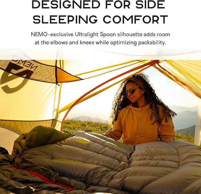 • Ultralight Spoon shape adds room at elbows and knees yet is tailored for weight-shaving warmth.