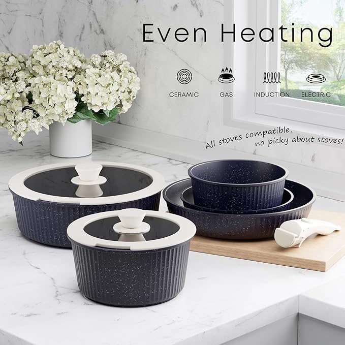 Caannasweis Detachable Nonstick Cookware Set - Stackable Induction Pots and Pans With Removable Handles, Dishwasher Safe - For RV Camping, Oven and Stovetop Use, 5 Pieces (Starry Sky)