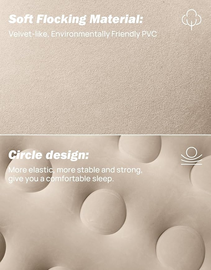 • 【Luxurious and Supportive】: Crafted from thickened fabric, our air cushion offers exceptional stability and comfort, easily supporting the weight of two adults. The surface and pillows are made from a soft, velvet-like flocking material, providing a cozy and plush feel for a truly restful night’s sleep