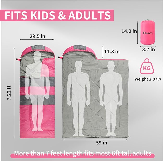 • Comfort for All Ages: Sleep well with Perihw sleeping bag, three different color ( Pink/Blue/Black) loved by everyone. No matter how tough the terrain or long the day, our camping sleeping bags are engineered to guarantee you a good night’s sleep.