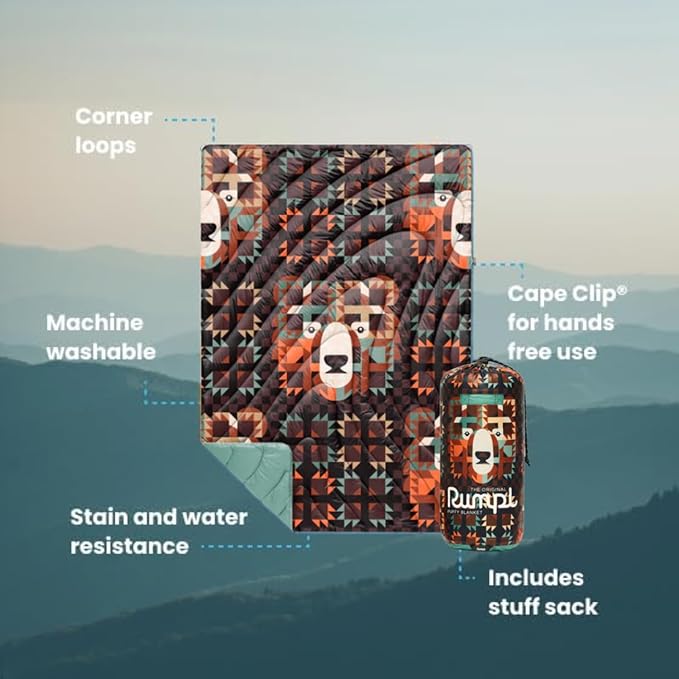 Rumpl Original Puffy Blanket - Warm, Water-Resistant Camping Blanket with 100% Recycled Synthetic Insulation, 52"x75", Original Puffy V1, Grizzly Slumber