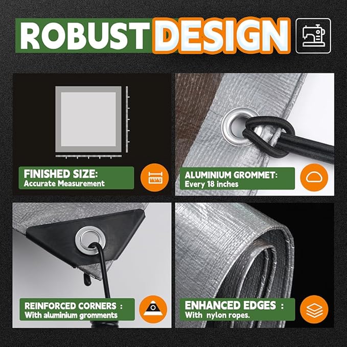 • 【MULTIPURPOSE USE】Protect your roof, truck, car, tent, pet cages, boat, or backyard pool, outdoor furniture from rain, sand, dirt, and sunlight, weather resistant. You never know how convenience of this tarp will be