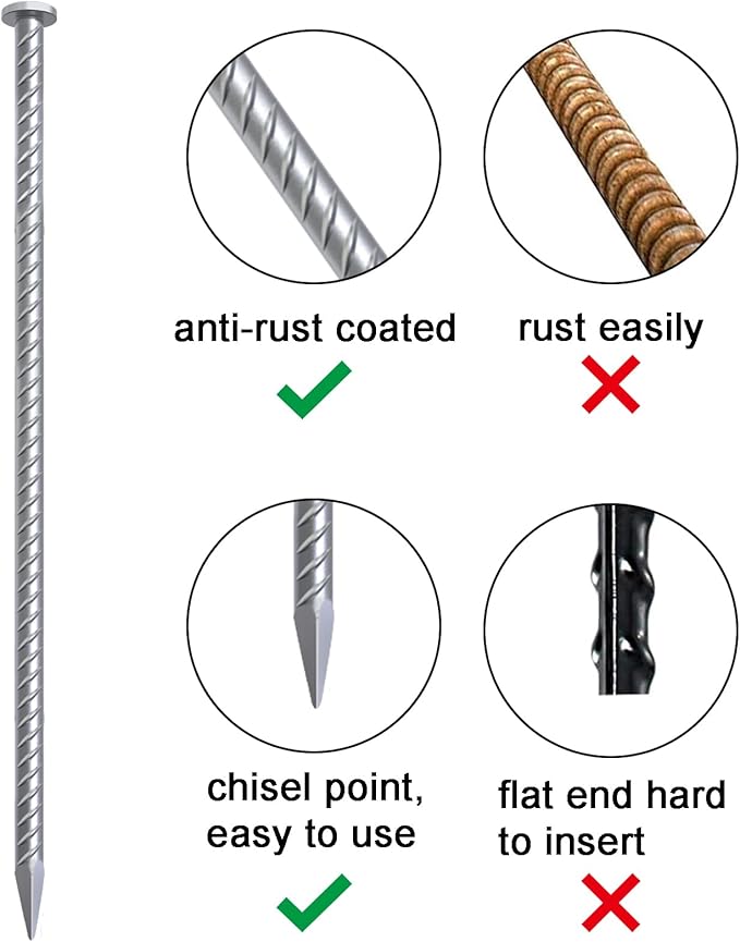 • Chisel Point End - 45 degree end makes anchoring spikes diving into all ground quickly and remove the anchors. Such as asphalt, cement, wood, sand