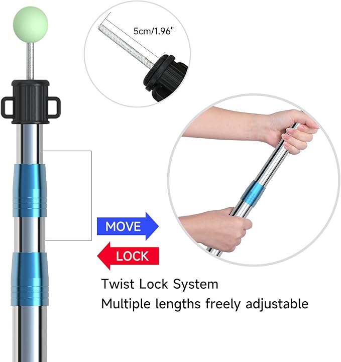 • 【Flexible Length Design】Adjustable tent poles extend from 37 inches/3 Feet to 86.6 inches/7.2 Feet in length, so you can position them at any length in between. Rotate to the left to lock the length, rotate to the right to unlock.