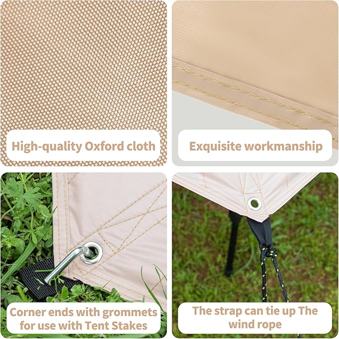 • ★Easy to use: unfold the tarp and use tent stakes to peg it to the ground through the metal grommets; then pitch the tent and use it, equipped with sturdy ground pegs in each corner, it can firmly connect the tent structure and enhance the overall stability.