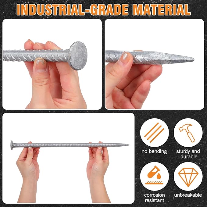 • Wide Application: from securing speed bumps and parking blocks to anchoring signs, fences, asphalt, blacktop, macadam, concrete, and other structures, these metal stakes for ground offer reliable support and stability; They can also be applied to secure trees, vines and other garden plants stakes support, landscape timbers, concrete forming, survey markers, camping tents; The large head of the metal stakes is easy to hammer, and the pointy end makes the stakes easy to insert into the ground