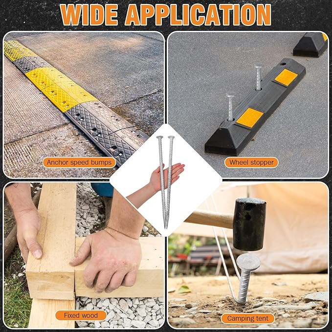 • Easy Installation: installing these heavy duty metal stakes is a breeze; The process involves 3 simple steps, first, drill 3 to 4 inches into the asphalt, aligning with the holes on your speed bump or parking block; Second, using a hammer, drive the spikes through the holes until they are securely in place; Finally, hammer down the spikes until the spike head is flush with the device; This simple installation method saves you time and effort, allowing you to complete your project with ease