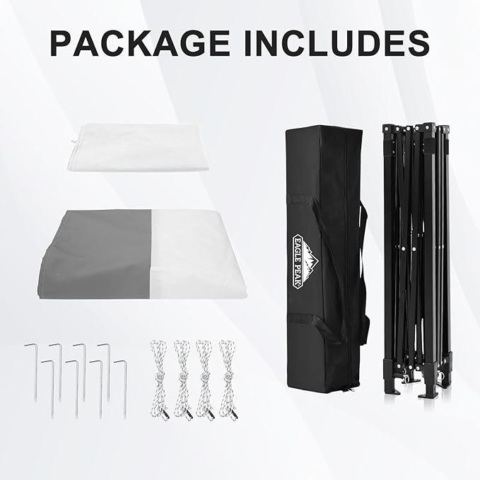 • EAGLE PEAK PROMISE: EAGLE PEAK offers a 1-year limited after sale protection from the original date of purchase. Unlike many other canopy manufacturers, EAGLE PEAK offers this for our frames, canopies and bags! If you have any other questions, please contact our professional service team .