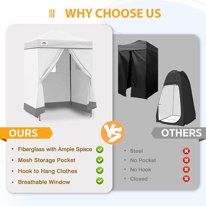 • INSTANT PRIVACY CHANGING ROOM: 5x5 changing tent for one or two people. Perfect as a changing room or sun cabana for outdoor activities: fashion show, photoshoot, camping, backyards, pool party or a showering tent, portable toilet shelter .