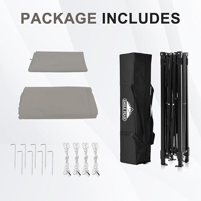 • EAGLE PEAK PROMISE: EAGLE PEAK offers a 1-year limited after sale protection from the original date of purchase. Unlike many other canopy manufacturers, EAGLE PEAK offers this for our frames, canopies and bags! If you have any other questions, please contact our professional service team .