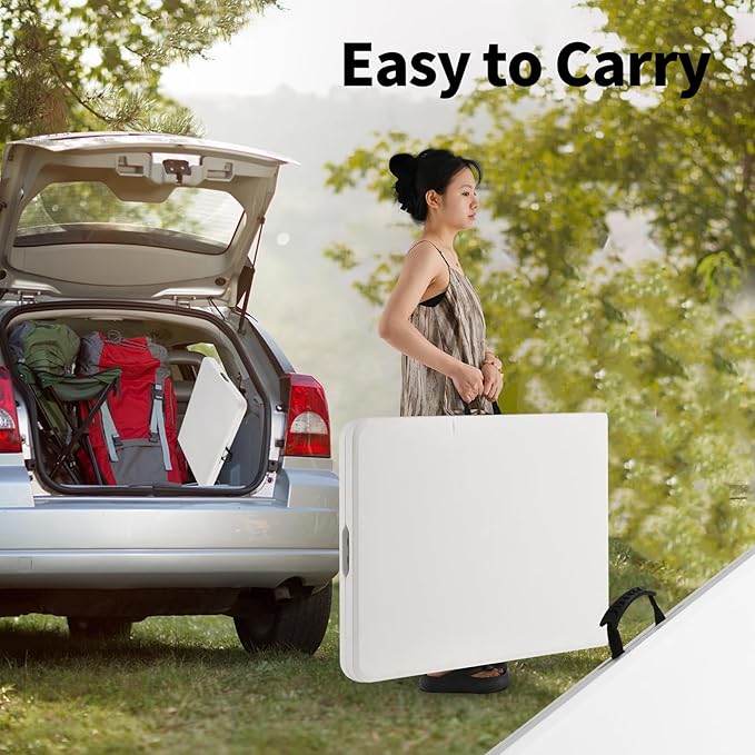 • [Portable Anywhere] The Table Folds to 4" thickness with side handle. Perfect for SUV/car trunk storage.