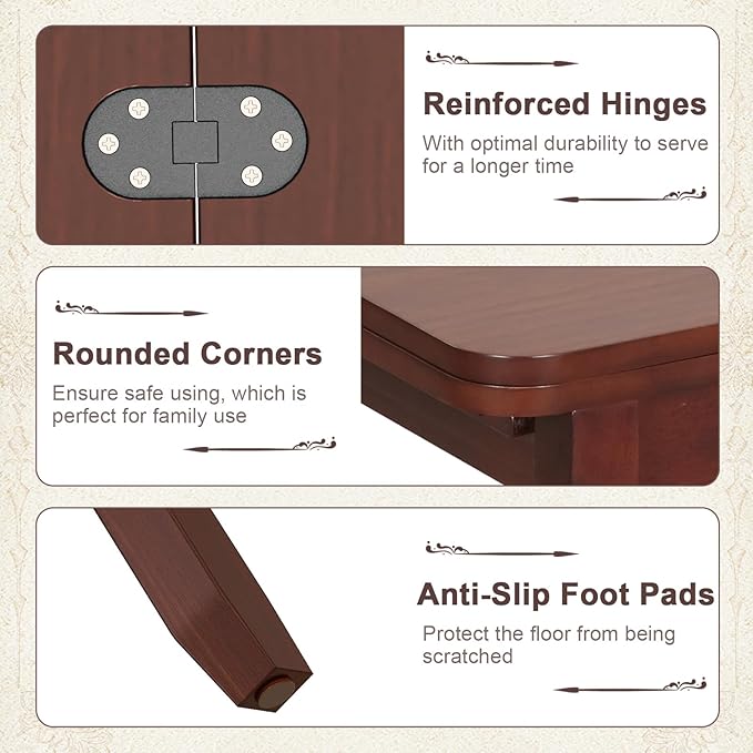 • Solid Rubber Wood: To maintain optimal sturdiness, the folding dinner table features 4 rubber wood legs that are safe, natural, anti-crack and durable. Besides, it comes with anti-slip foot pads to enhance stability and floor protection at the same time.