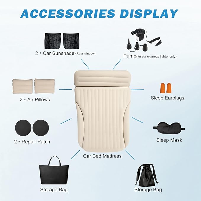 • 🚗【CIREMIV Car Air Mattress Equipped with the Most Complete Car Sleeping Accessories】Are you tired of searching high and low for the perfect accessories to complement your suv air mattress? Why spend hours scouring different websites or stores when you can find everything you need in one place? As an Amazon seller, we take immense pride in offering you a wide range of accessories that are tailor-made for our premium car mattress.