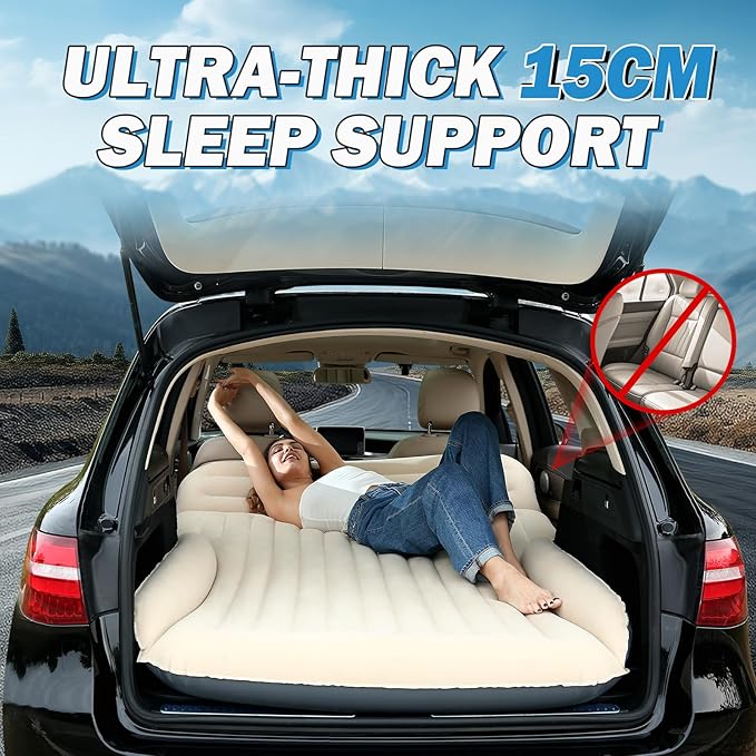 • 🚗【Suitable for Any Occasion】Our suv air mattress car bed camping can fit any occasion. Whether you're enjoying a weekend getaway, a family camping trip, an extra bed for guests at home, or a car trip, our air mattress for suv can provide you with a warm and comfortable sleeping experience. Transform any place into a comfortable sleeping area in a short time.