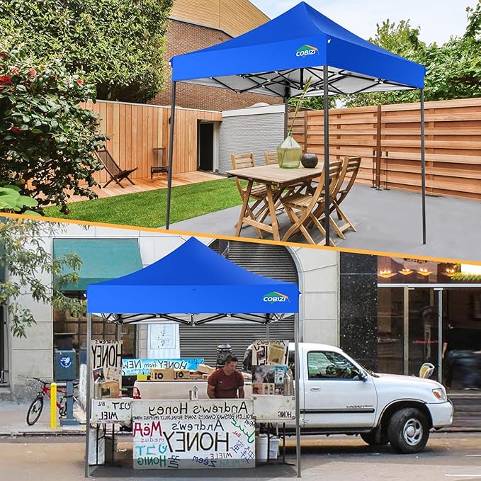 COBIZI 6.6x6.6 Pop Up Canopy Without Sidewall,Heavy Duty Canopy UPF 50+ All Season Wind Waterproof Commercial Outdoor Party Tents for Parties Canopy Gazebo with Storage Bag(6.6 x 6.6 ft Blue)