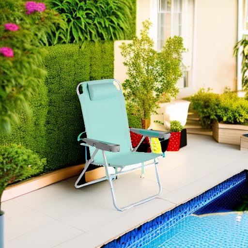 • High Seat Oversized Beach Chairs for Adults: The 5-Position Reclining with High Back Beach Chair provides you an ultimate comfortable seating experience. Easily secure the armrest to adjust the back in an angle you like, and relax and enjoy the breeze during your journey.