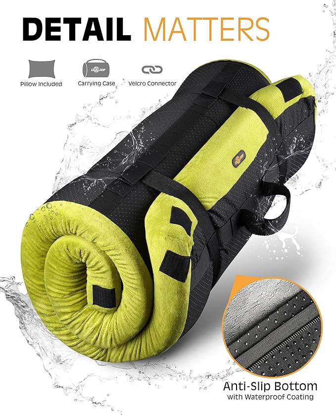 • 【Safe Material:suitable for All】The sleeping pad is made of a scientific combination of 30D Support Foam and 40D Memory Foam. OEKO-TEX Certificated, all materials are safe with no odor. It's suitable for men and women, people of all ages.