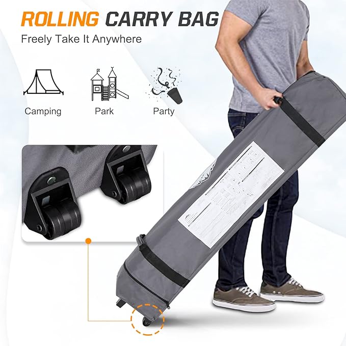 • COMPACT AND PORTABLE: Easily take this outdoor tent anywhere with its convenient wheeled bag which fits into most car trunks. Easily bring it along to tailgate and backyard parties, the beach, camping, the park or wherever your fun begins