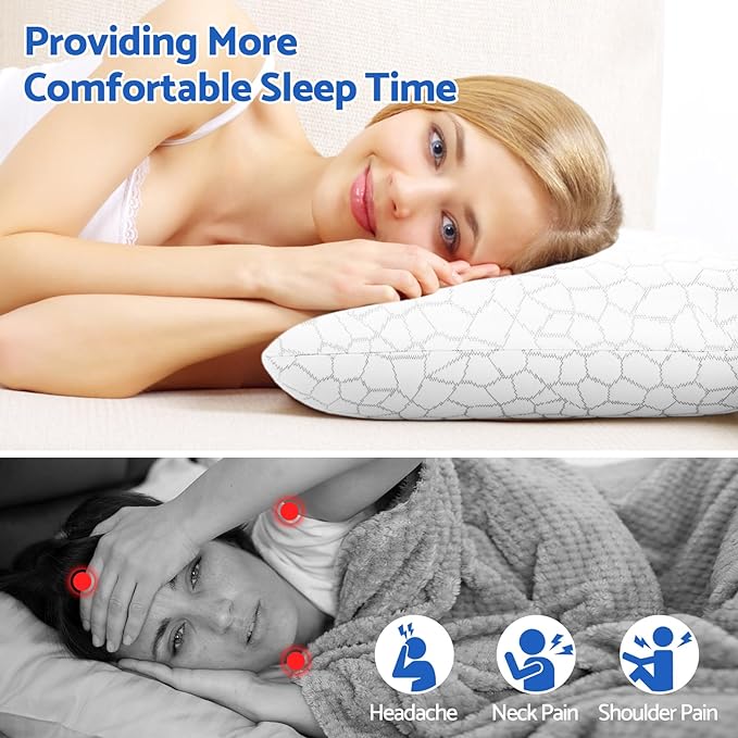 Memory Foam Pillows for Sleeping, Cooling Pillow with Removable and Machine Washable Cover, Bed Pillow for Side, Back and Stomach Sleepers, Standard Size (2 Pack)