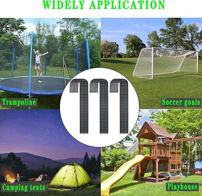 • 【STRONGER ANCHORS】These 12-inch-long trampoline stakes with ridges can prevent the trampoline from overturning or moving during using.