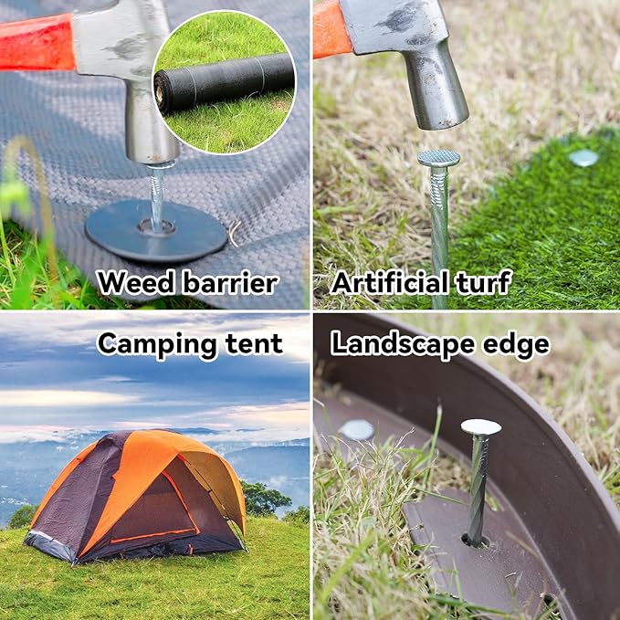 • MULTI PURPOSE: Landscape stakes with washers can be used to hold weed barriers, landscape fabric, garden fencing, artificial turf, landscape edging, patio rugs, tents, antifreeze cloth and more