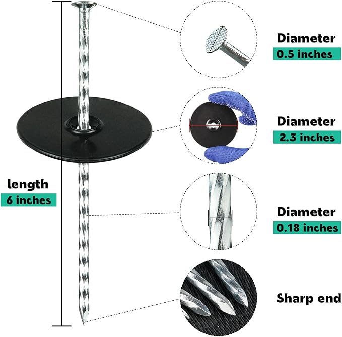 • DIMENSIONS AND PACKAGE: Spiral landscape stakes are 6 inches long, 0.18 inches in diameter, gaskets are 2.3 inches in diameter and 0.1 inches thick. A total of 100 sets a pack