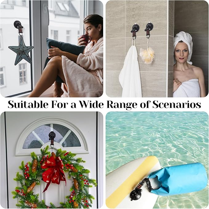 • Quick & Simple Installation: The sucker is very easy to use,just push the suction cup to a smooth surface and rotate the handle to secure the lock. It won't scratch to the car or any other smooth flat. and the rope pulley system is easy to operate,the carabiner can easily retract the rope, making it easier and faster for you to hang and adjust the length of the rope.