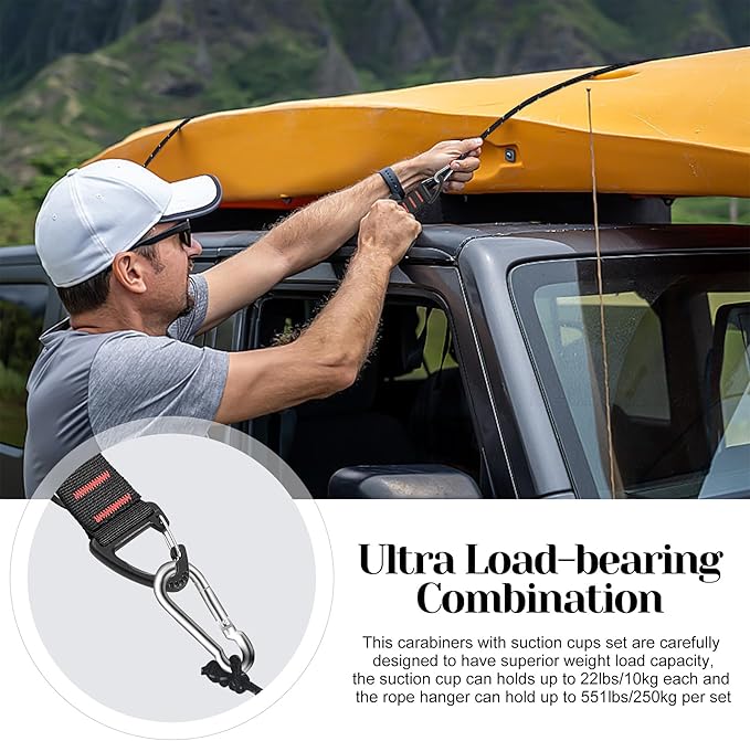 • Wide Range of Applications:This suction cups with rope tie downs ratchet straps set can be widely applicable for home, office, outdoor ,playroom ,yard and other occasions,also can be used in rv tent,car camping , car awing ,hanging growing light fixtures,inline duct fans,carbon filters, ventilation equipment and various place needs.