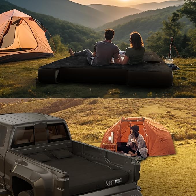 Truck Bed Air Mattress, Full Size Truck Beds, Inflatable Air Mattress Bed with Air Pump 2 Pillows, Carry Bag, Pickup Bed Air Mattress for Chevrolet Silverado, Dodge Ram, Ford, Black
