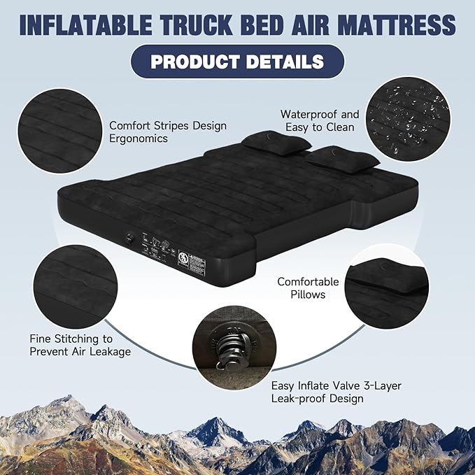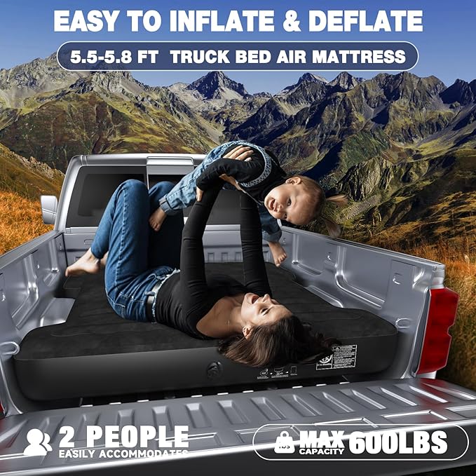 • QUICK INFLATION & DEFLATION: This truck air bed mattress features a spiral nozzle and an included air pump for rapid inflation and deflation. Its portability makes it ideal for on-the-go lifestyles