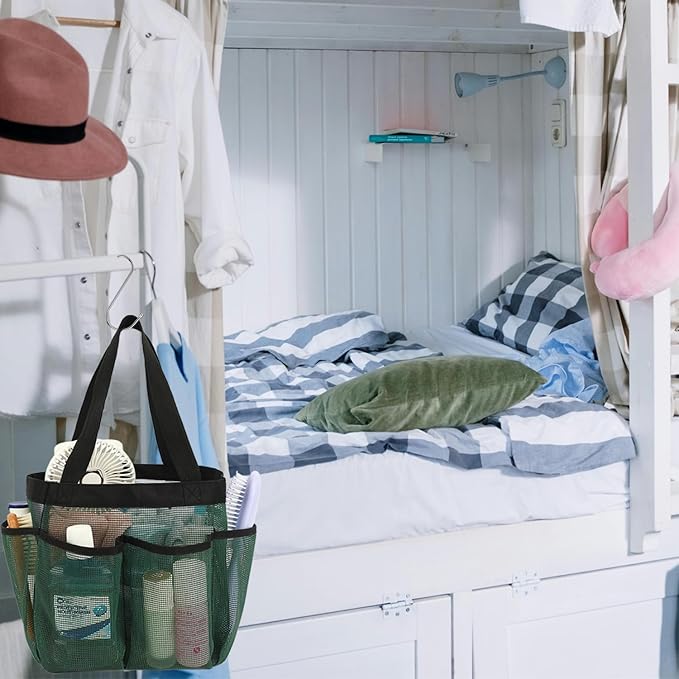 Mesh Shower Caddy Portable for College Dorm Room Essentials, 8-Pocket Large Shower Basket Tote Bag with 2 Handles for Toiletry, Bathroom, Beach, Camp, Gym