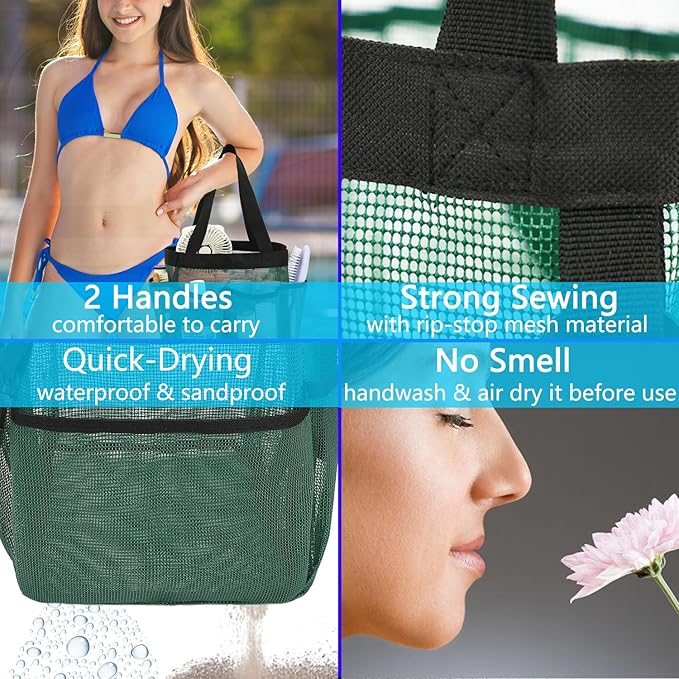 • โฑ๏ธใ€๐•๐ž๐ง๐ญ๐ข๐ฅ๐š๐ญ๐ข๐จ๐ง & ๐๐ฎ๐ข๐œ๐ค-๐ƒ๐ซ๐ฒใ€‘The mesh design of the camping toiletry bag provides excellent ventilation, allowing sand and water to easily escape. This feature helps the beach bag dry quickly, preventing the accumulation of sand and water, and keeping your belongings in a clean and dry