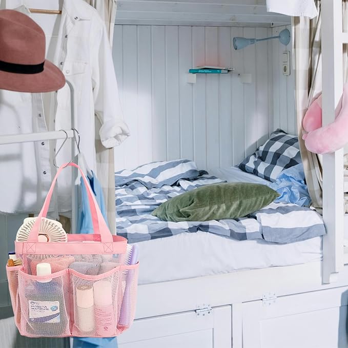 Mesh Shower Caddy Portable for College Dorm Room Essentials, 8-Pocket Large Shower Basket Tote Bag with 2 Handles for Toiletry, Bathroom, Beach, Camp, Gym