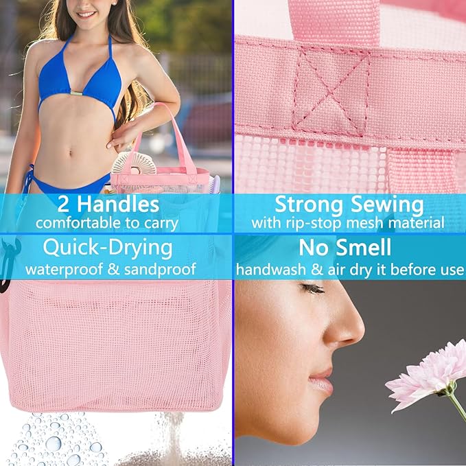• โฑ๏ธใ€๐•๐ž๐ง๐ญ๐ข๐ฅ๐š๐ญ๐ข๐จ๐ง & ๐๐ฎ๐ข๐œ๐ค-๐ƒ๐ซ๐ฒใ€‘The mesh design of the camping toiletry bag provides excellent ventilation, allowing sand and water to easily escape. This feature helps the beach bag dry quickly, preventing the accumulation of sand and water, and keeping your belongings in a clean and dry