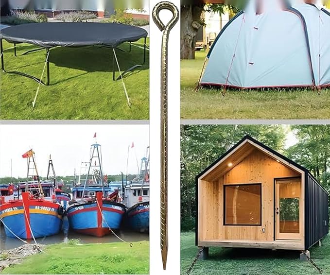 • Galvanized metal: The steel piles are made with a Galvanized process and are 0.5 inches in diameter for all high strength applications. The steel pile has a 1.8 inch top, and the wide top can firmly fix the object. When the rope is wrapped around the reinforced pile, the rope will not escape from the top of the pile.