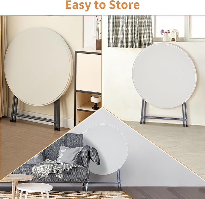 • 【Portable & Foldable Design】: Featuring a foldable design and lightweight construction, this white round plastic table is easy to transport and store. Collapsible table portable can be folded to a compact size for convenient storage in limited spaces, saving valuable space in your home or venue.