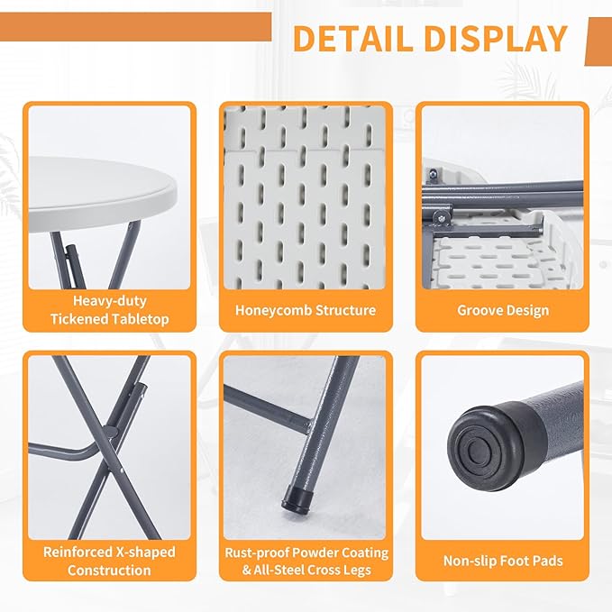 • 【Sturdy Plastic Construction】: Crafted with premium materials including environmentally friendly vinyl padding, HDPE material, and resin surfaces, our folding round table ensures long-lasting durability. The surfaces of the round card table are waterproof, scratch-resistant, and impact-resistant, making them easy to clean and ideal for indoor or outdoor use.