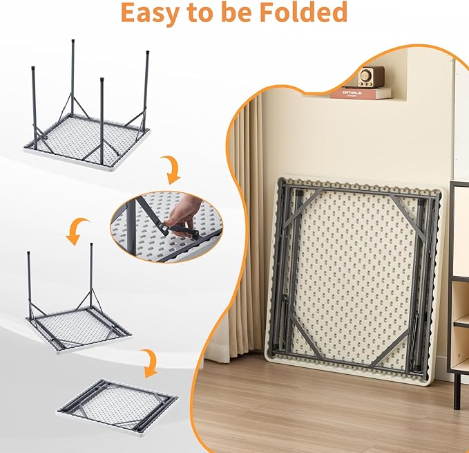 • 【Easy Setup and Convenient】: Using this folding table square is hassle-free. With no assembly required, our multi-purpose square table is ready for use, whether for indoor gatherings or outdoor events.